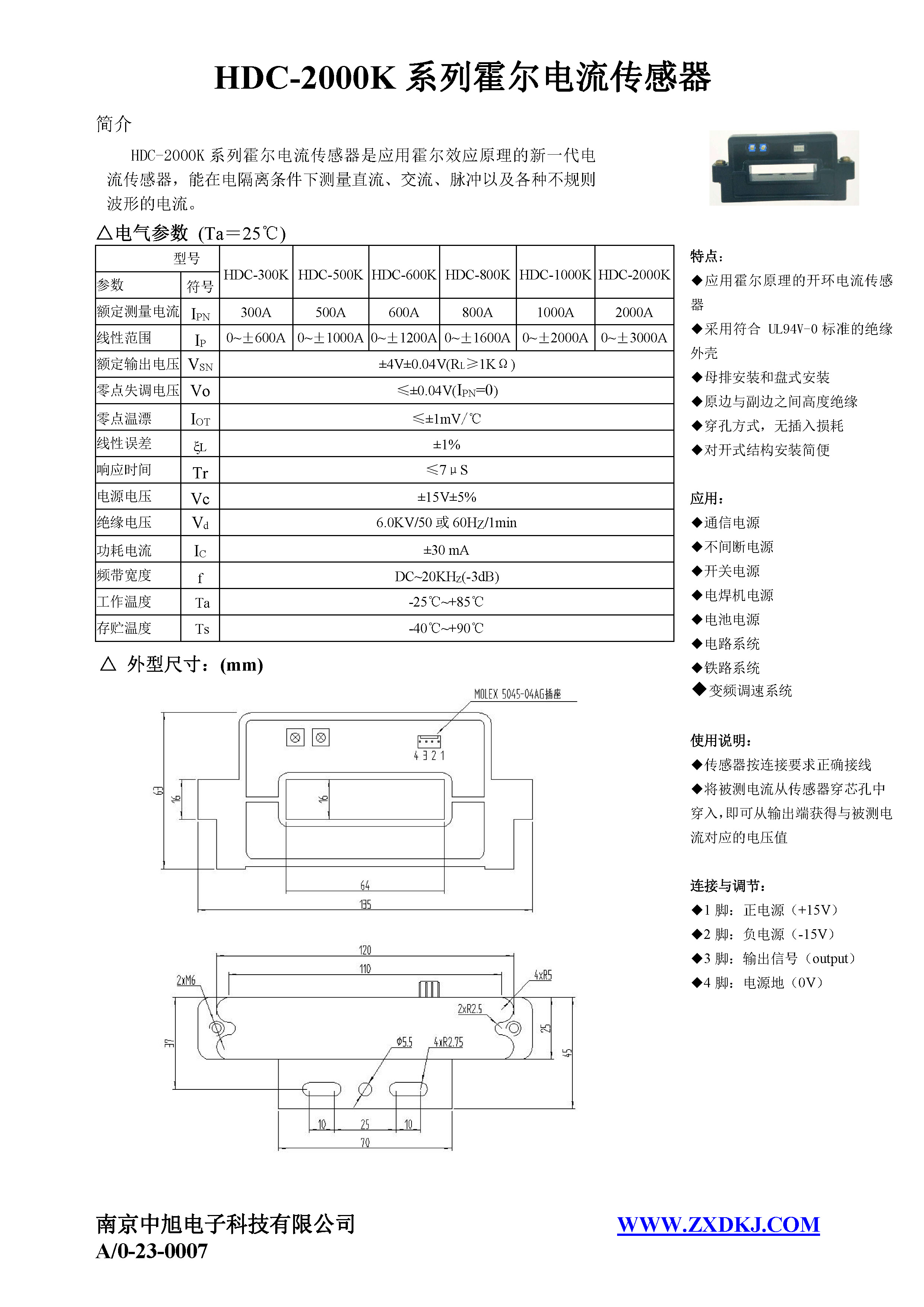 HDC-2000K系列霍爾電流傳感器是應用霍爾效應原理的新一代電流傳感器,能在電隔離條件下測量直流、交流、脈沖以及各種不規則波形的電流。