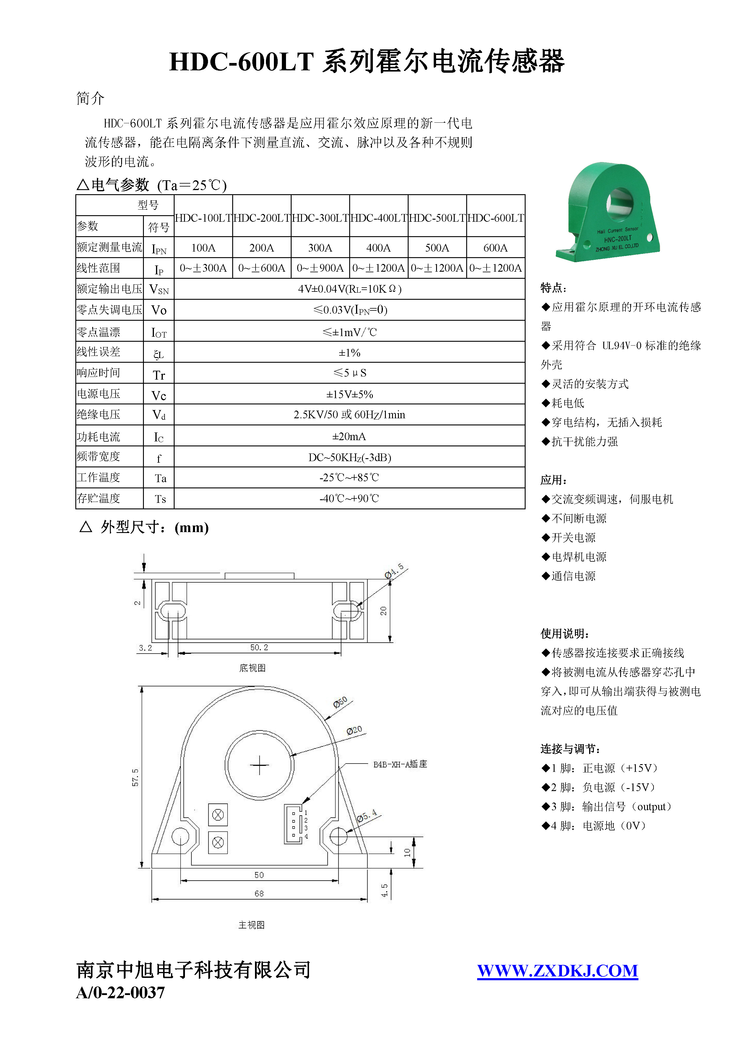 HDC-600LT系列霍爾電流傳感器是應用霍爾效應原理的新一代電流傳感器,能在電隔離條件下測量直流、交流、脈沖以及各種不規則波形的電流。