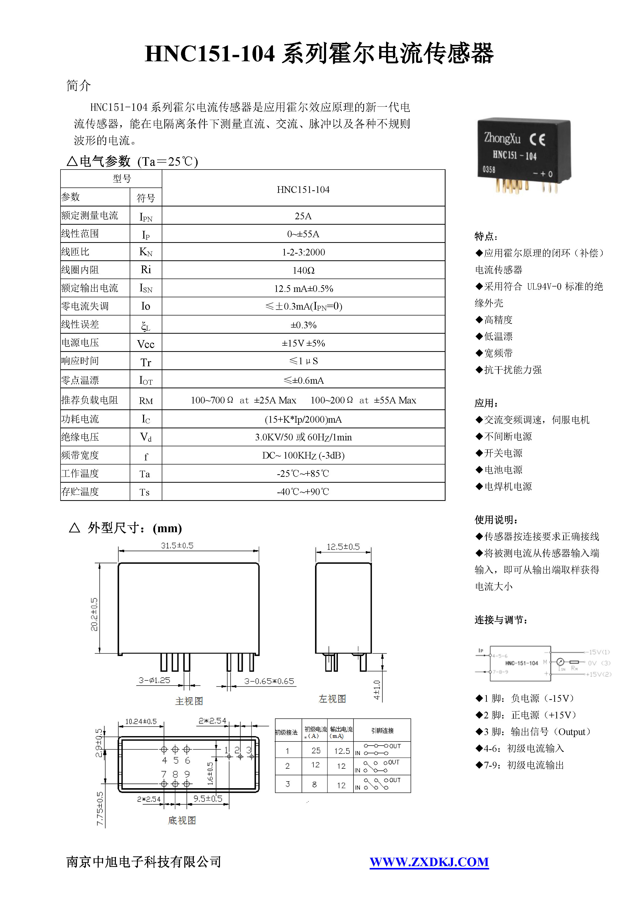HNC151-104系列霍爾電流傳感器是應用霍爾效應原理的新一代電流傳感器,能在電隔離條件下測量直流、交流、脈沖以及各種不規則波形的電流。